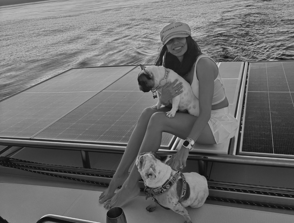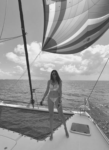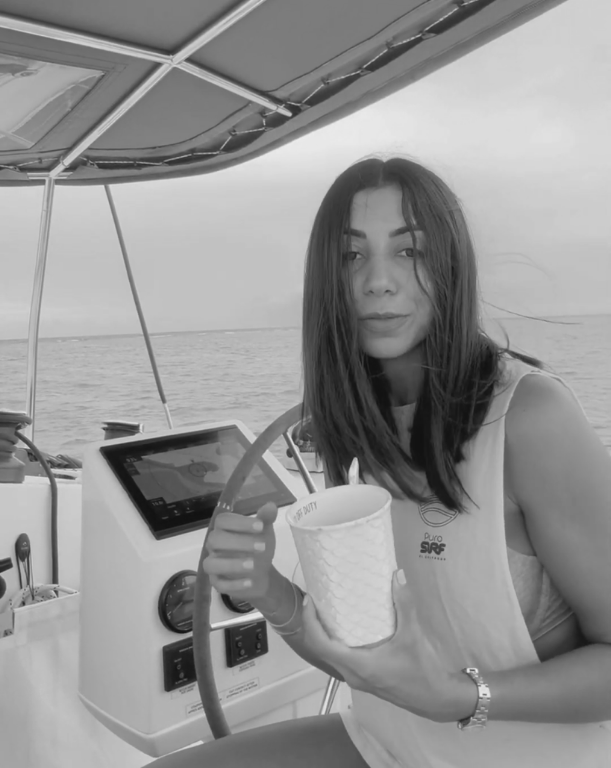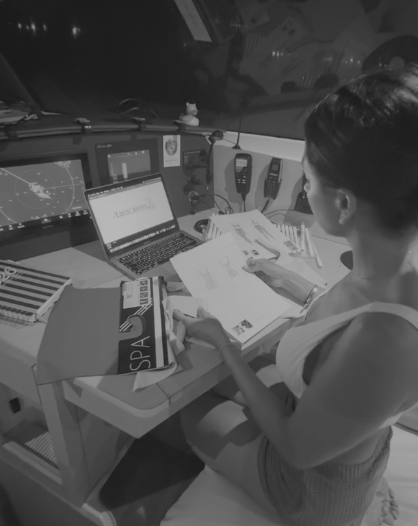 Es curioso cómo hoy mi oficina flota. Trabajo desde un catamarán que se llama Soulmate @soulmateatsea, pero al mismo tiempo estoy profundamente conectada a tierra: a mi estudio, a mi equipo, a las manos que cortan, ensamblan y corrigen cada pieza.