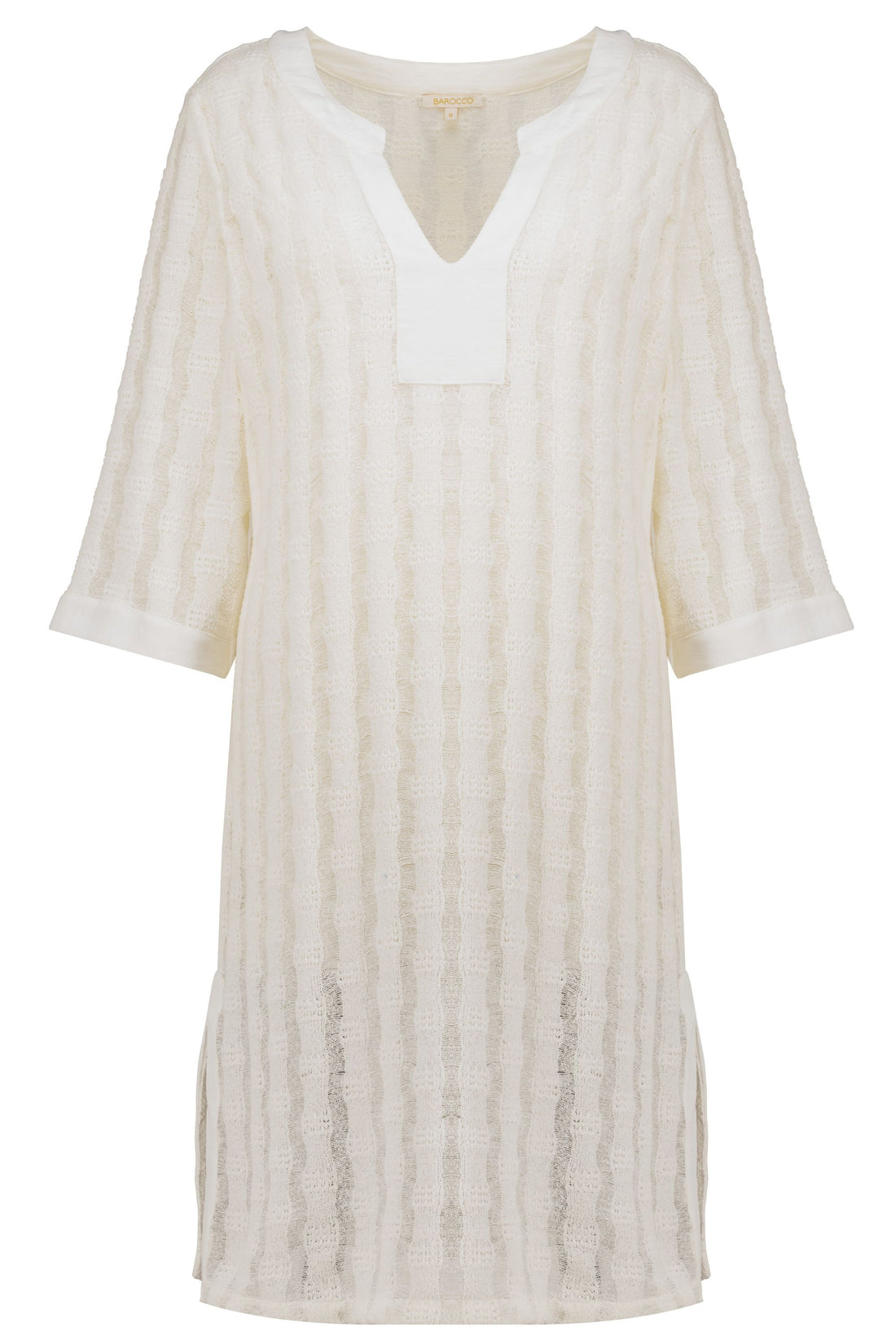 TUNICA KAIA-610 | Tunica larga blanco con escote en V, mangas 3/4